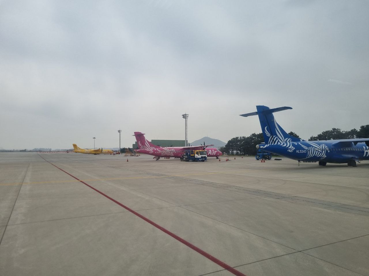 노랑 분홍 파랑 그리고 사진에는 안 나와 있지만 뒤쪽에 초록색 비행기도 세워져 있었다(귀여워~~)